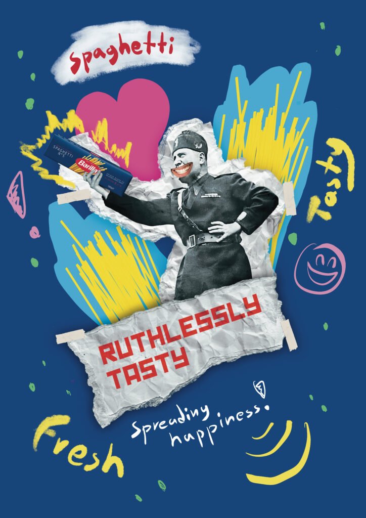 Ruthlessly Tasty does not merely depict; it reframes. Through satire and irony, it reveals how, in an age of hyper-consumption, imagery can neutralize the weight of the past.